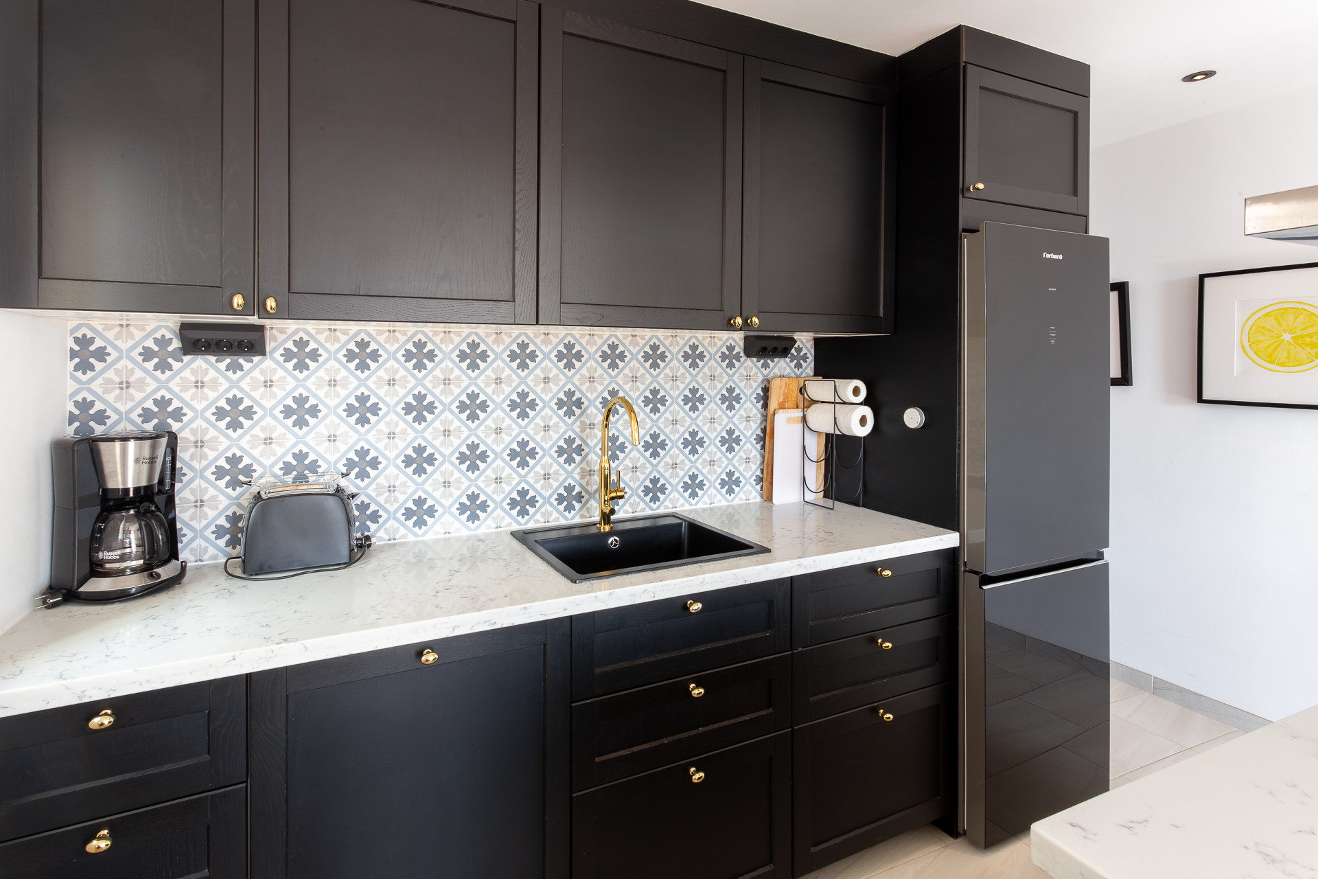Die offene Küche ist vollständig ausgestattet mit Induktionsherd, Backofen, Kühlschrank, Gefrierschrank und allem notwendigen Küchengeschirr — so lässt sich leicht kochen und sich wie zu Hause fühlen.
