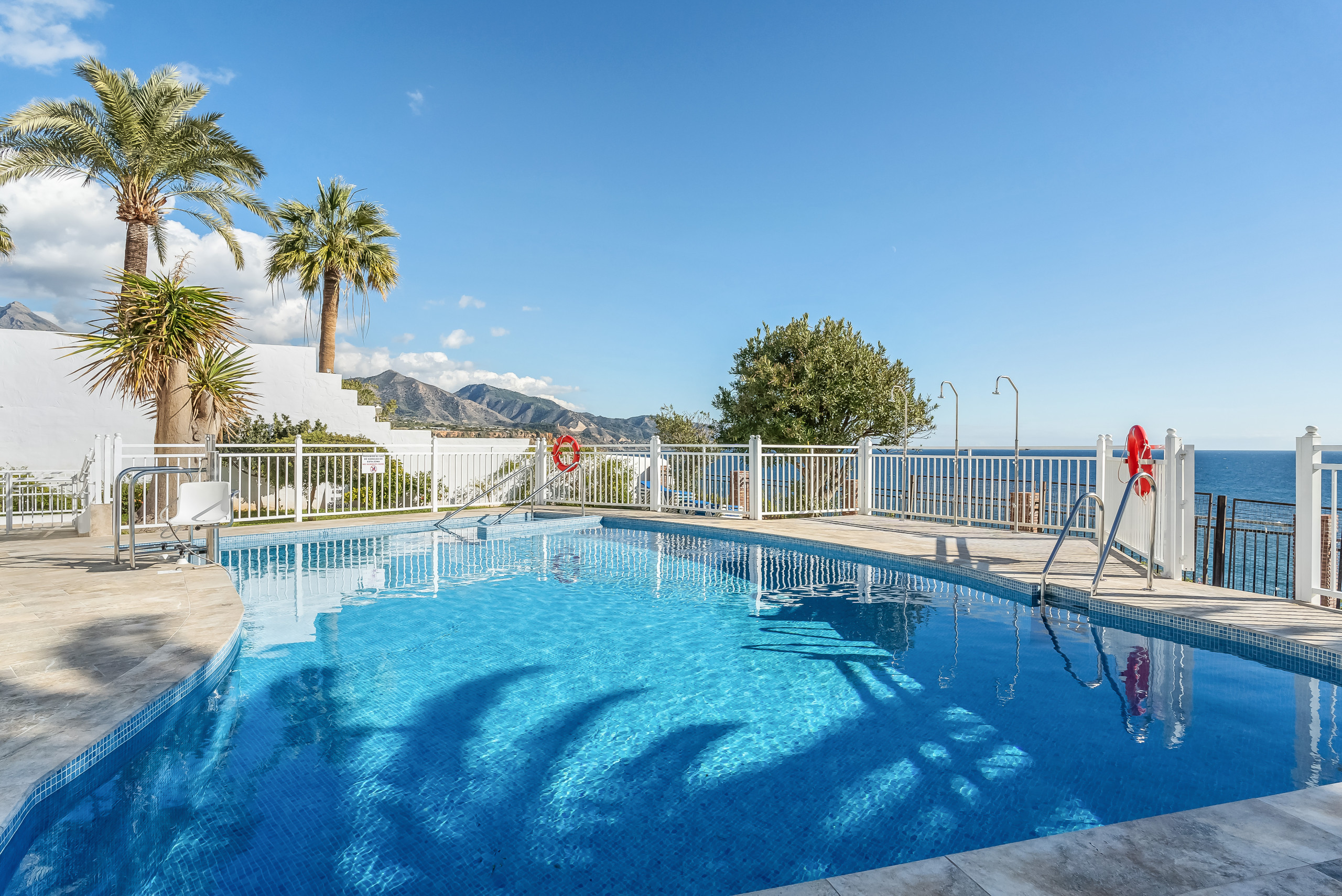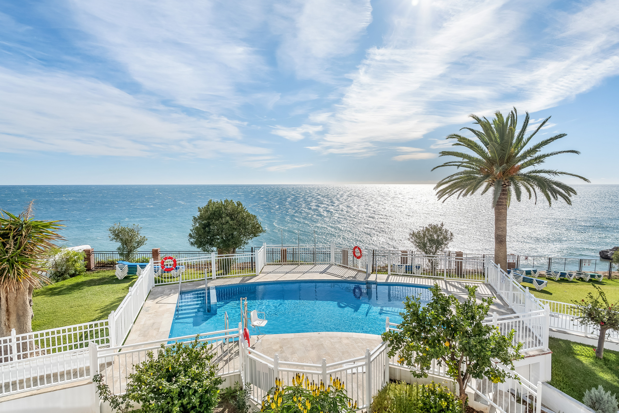 Disfrute de la piscina comunitaria con tumbonas gratuitas, abierta todo el año, y del exuberante jardín con limoneros y palmeras.