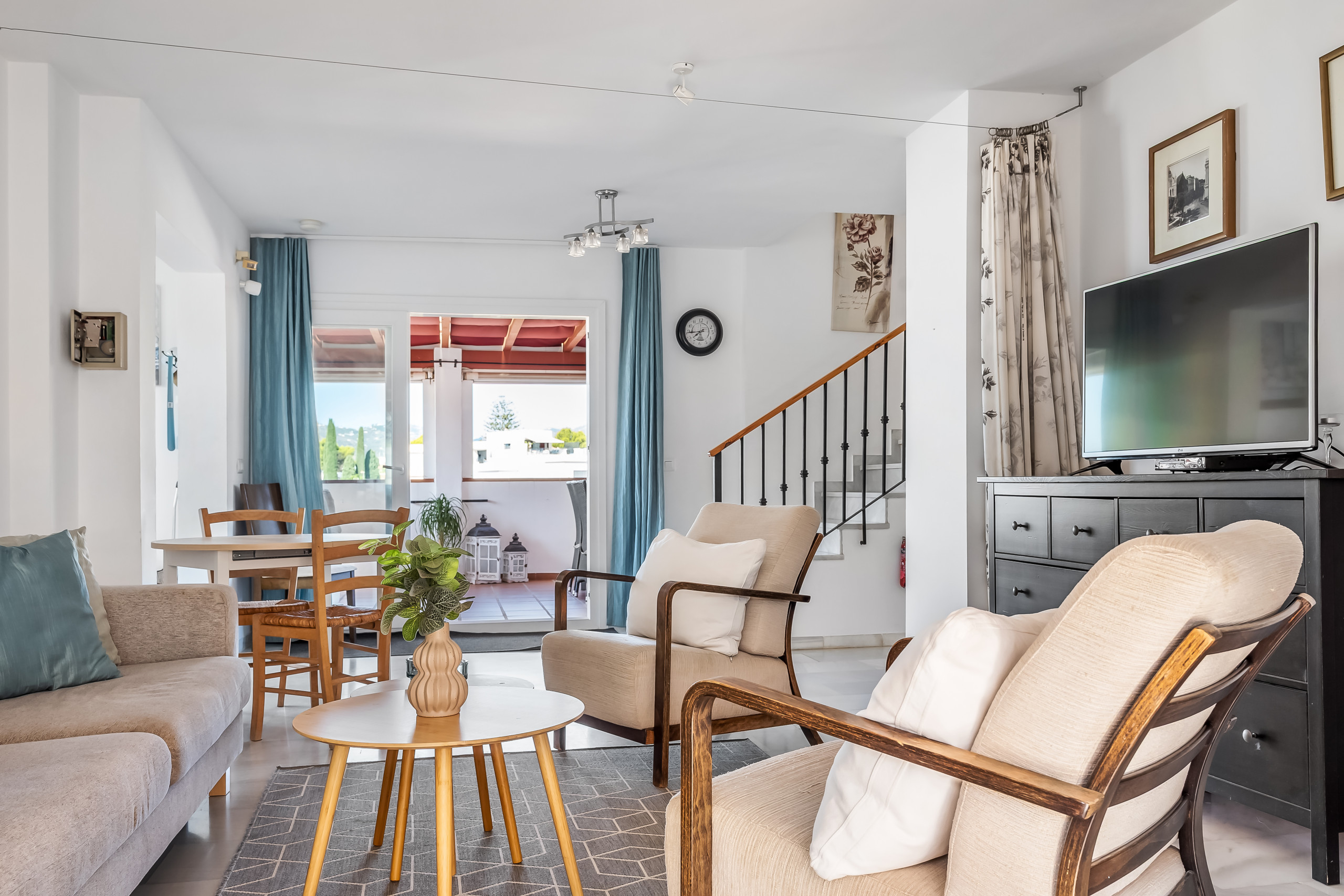 Bienvenido a esta preciosa casa adosada con tres amplias terrazas que suman un total de 105 m², el lugar perfecto para disfrutar de las vistas al mar y a la montaña. Hay zonas de sol y sombra durante todo el día, y la terraza en la azotea ofrece una puesta de sol mágica.