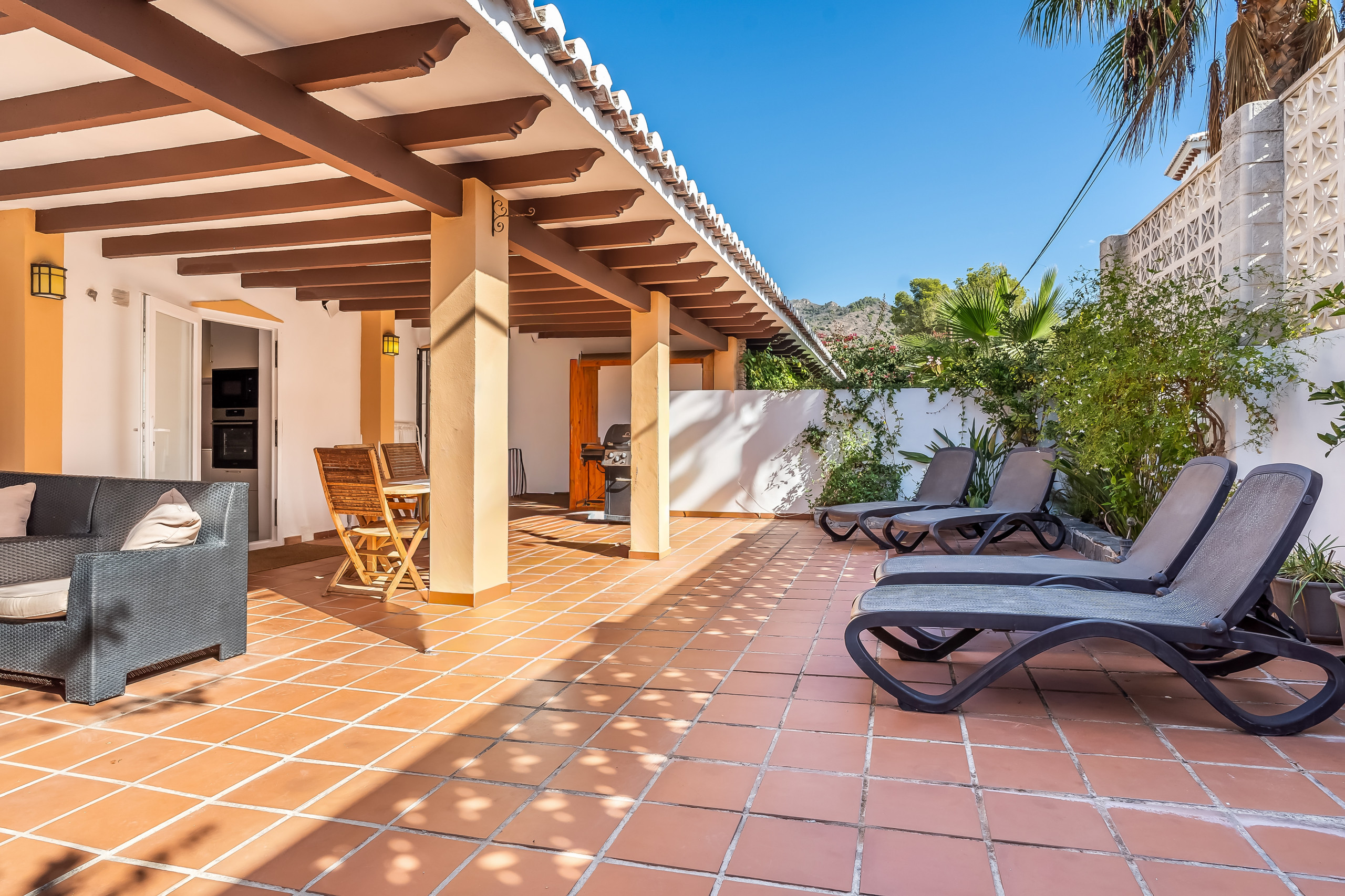 El alojamiento cuenta con tres cómodos dormitorios, dos baños con ducha y un aseo adicional. El amplio salón tiene acceso a dos de las terrazas, una de ellas un gran patio interior con barbacoa, zona de comedor, muebles de salón y tumbonas.